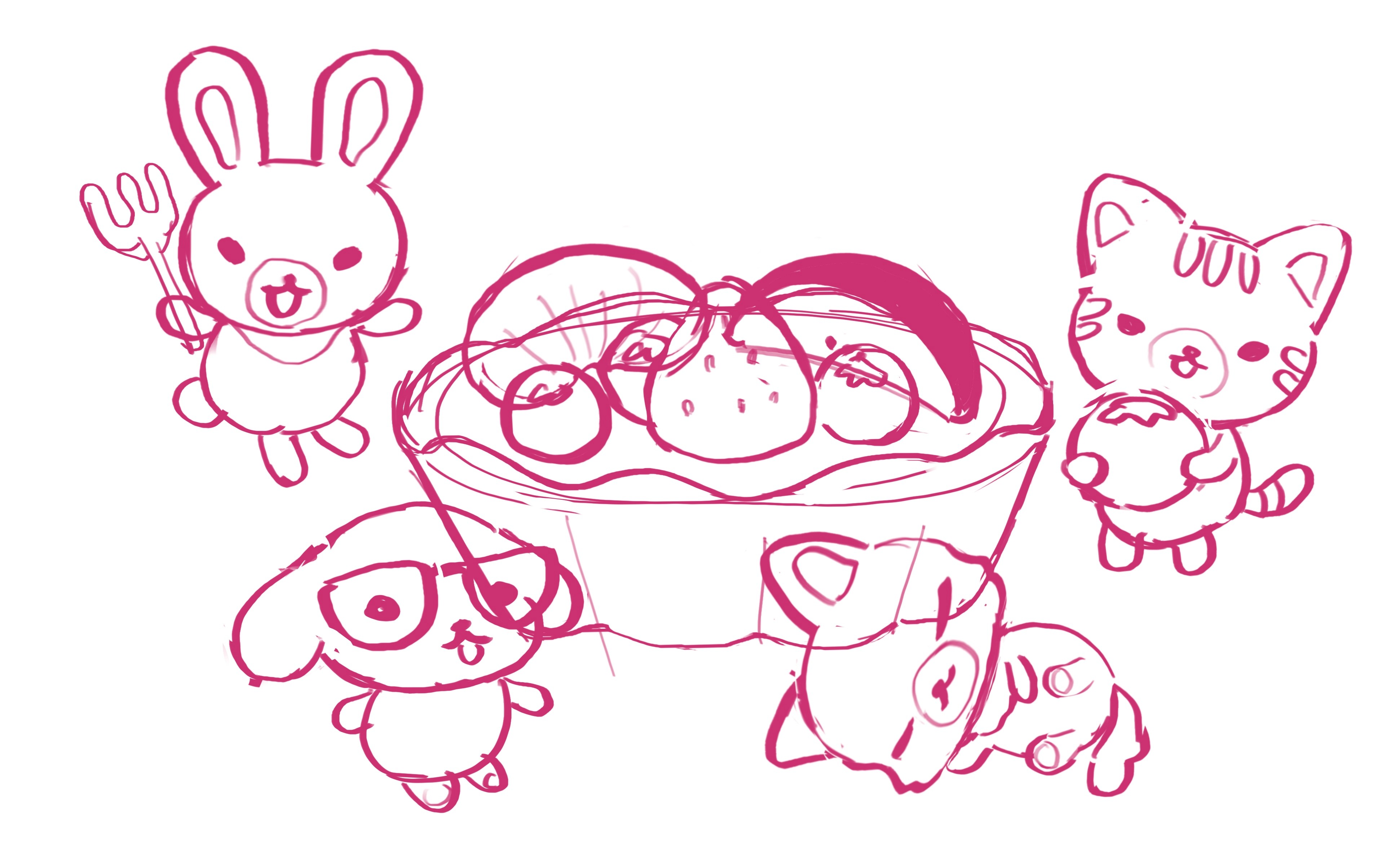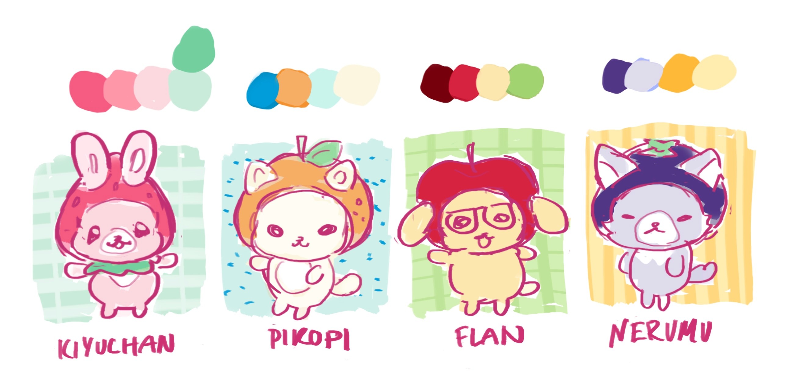 The most important part of this project was keeping the consistent theme. When Sanrio or San-X releases a new series, all the merchandise and advertising for the series follow a theme. Food themes are a popular choice across both companies, which is what inspired me to go with a cute fruit theme.