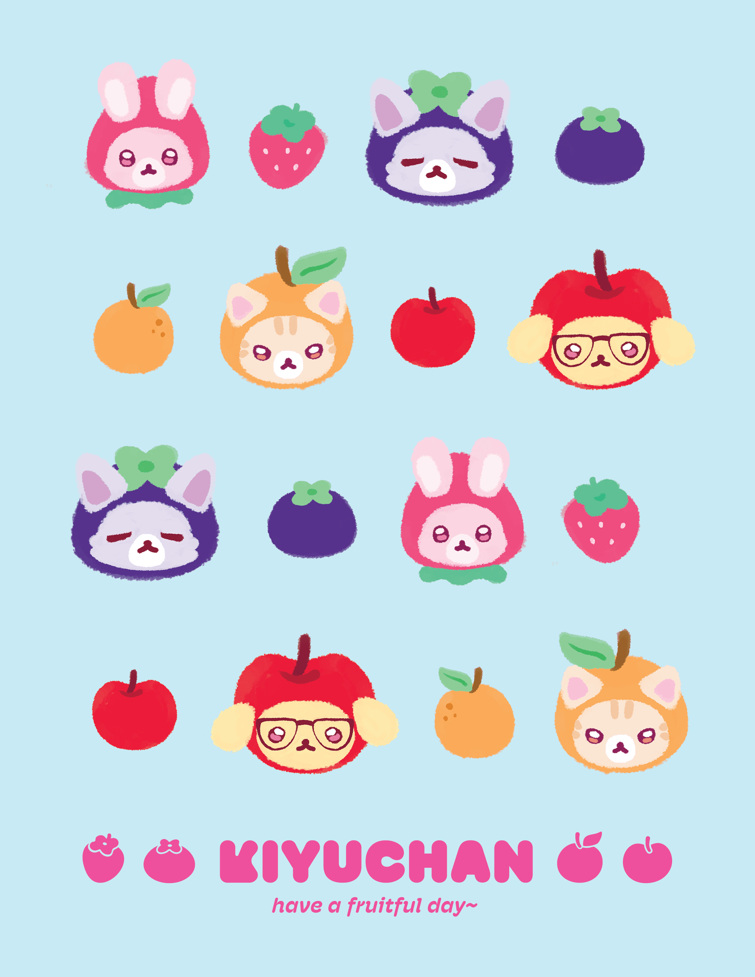 Kiyuchan + Friends is a set of characters I designed, inspired by the cute mascots seen in many Japanese brands such as San-X and Sanrio.